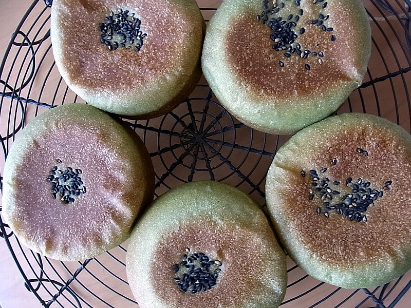 よもぎ粉を使った生地に、こしあんをいれたあんぱん